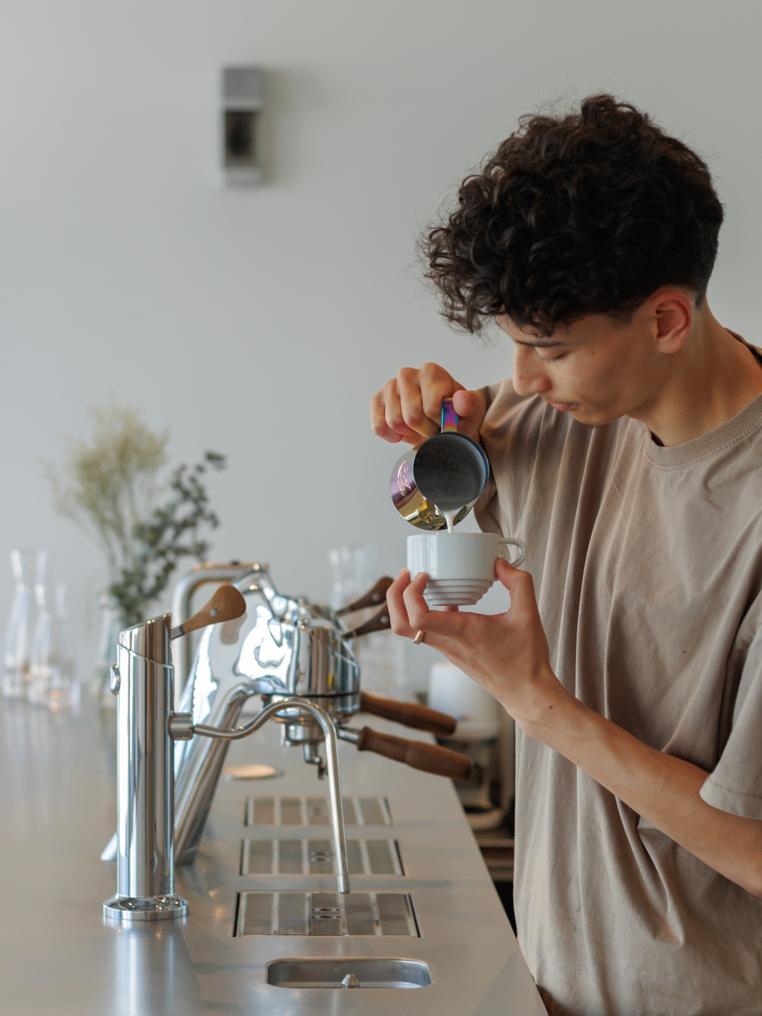 This under-counter approach creates space, both literally and conceptually. Baristas work with freedom of movement, guests watch the process unfold at eye level, and the cafe itself gains breathing room. The result is an environment where technique and hospitality coexist naturally, where the focus shifts from equipment to execution.